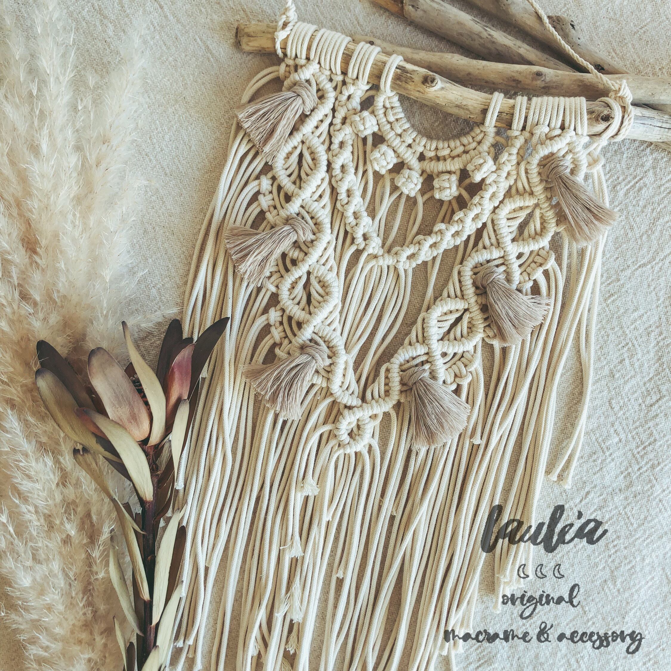 カラーはナチュラルのマクラメコードを使用しています。タッセルはグレージュカラーです。